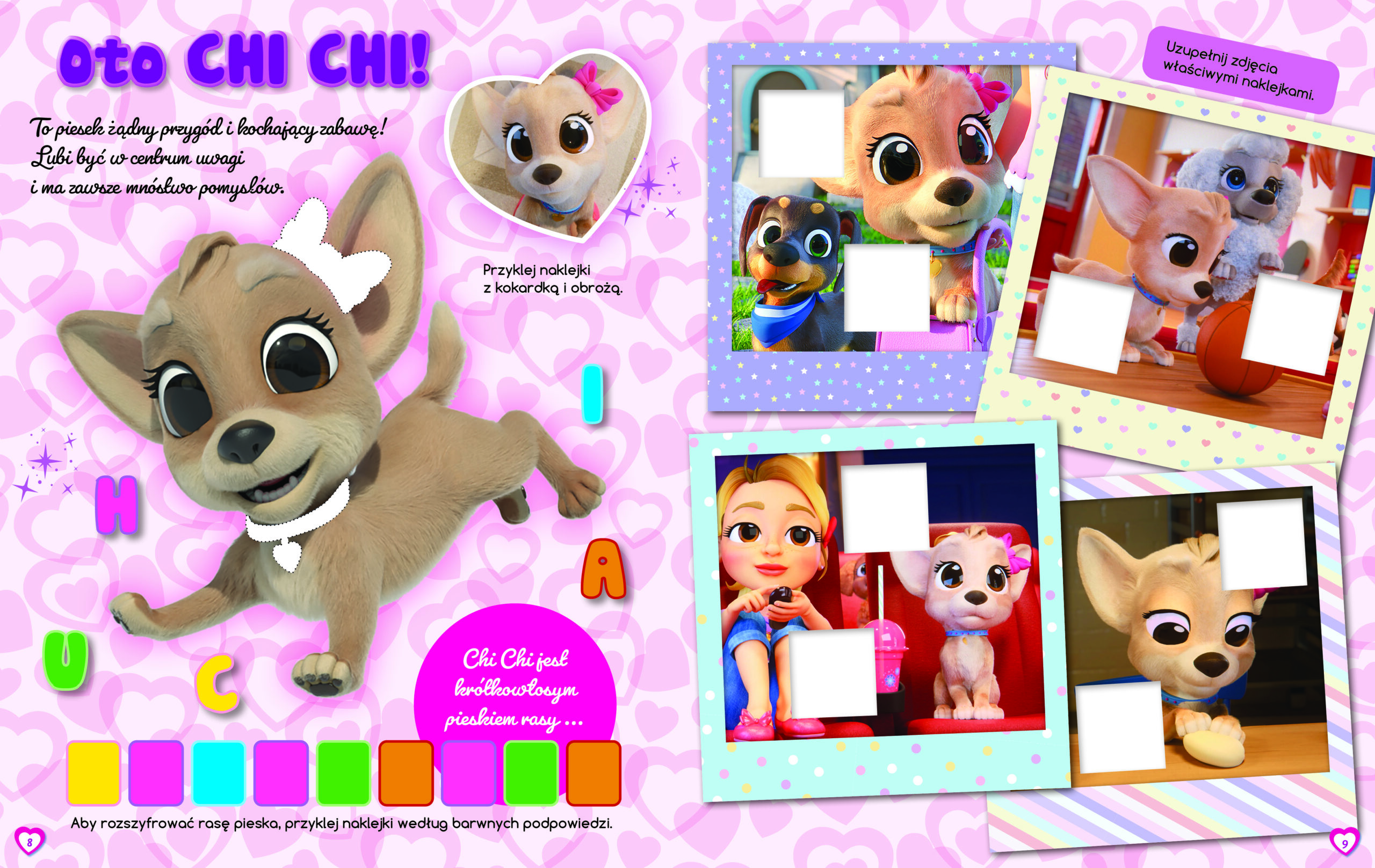 Zbiór zadań, łamigłówek, kolorowanek oraz wiele arkuszy kolorowych naklejek został zebrany w wyjątkową książkę w miękkiej oprawie. Wzbogacona naklejkami z bohaterami do wykonywania zadań oraz użytku najmłodszych.