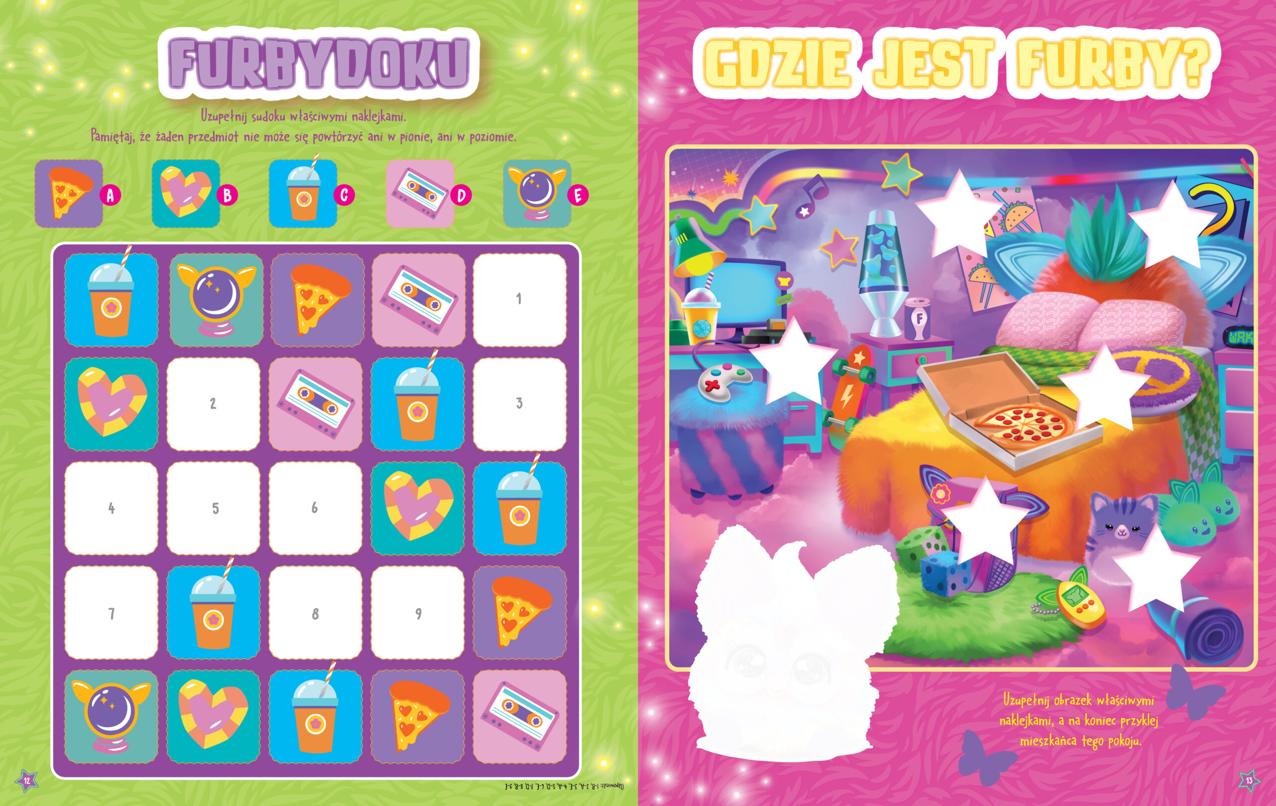 Zbiór zadań, łamigłówek, kolorowanek oraz wiele arkuszy kolorowych naklejek został zebrany w wyjątkową książkę w miękkiej oprawie. Wzbogacona naklejkami z bohaterami do wykonywania zadań oraz użytku najmłodszych.