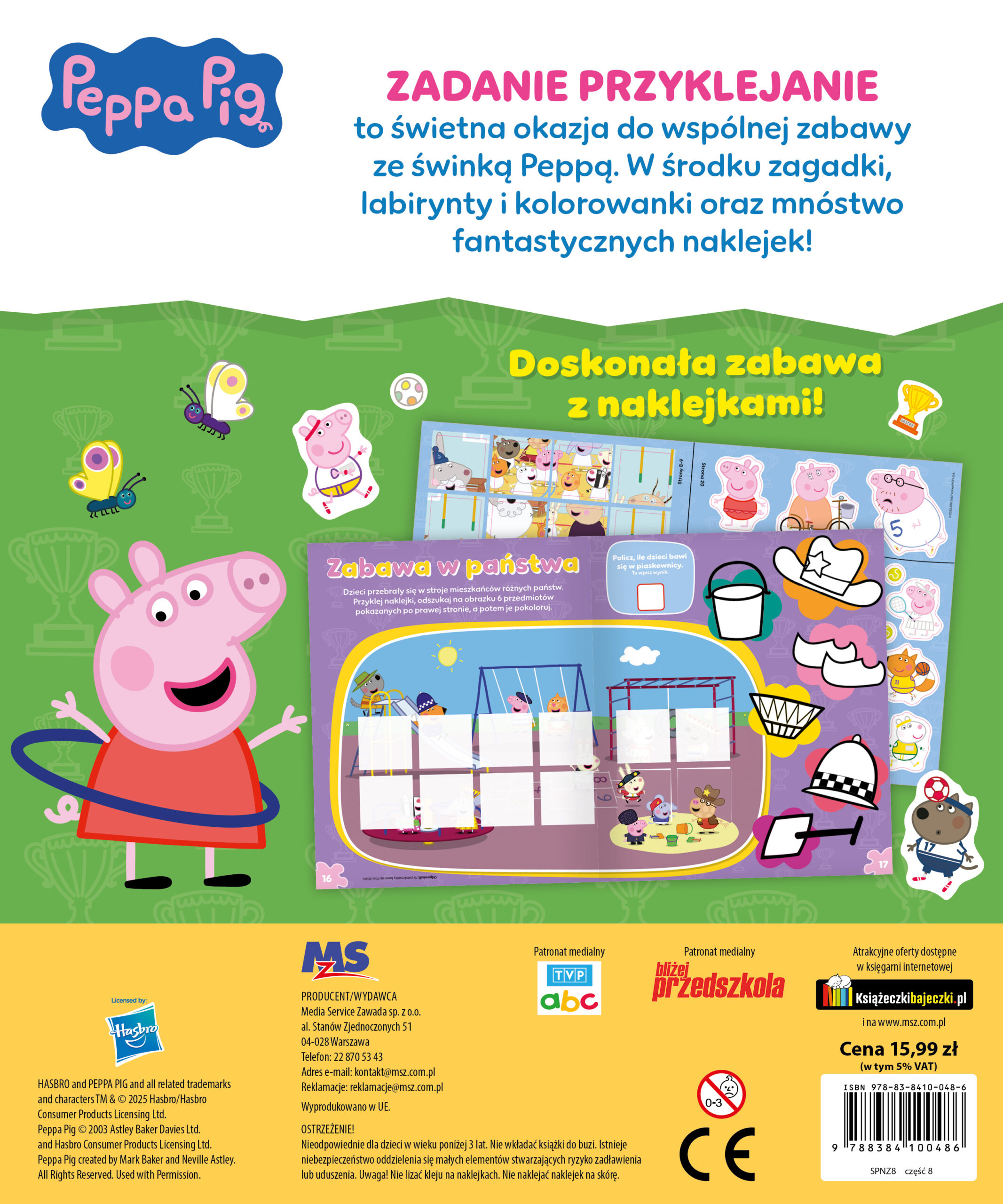 Peppa Pig Zadanie Przyklejanie to książka dla fanów świnki Peppy, jej rodzinki i przyjaciół. W środku zagadki, labirynty i kolorowanki oraz mnóstwo fantastycznych naklejek! Uruchom wyobraźnię i przenieś się do świata swoich ulubionych bohaterów.